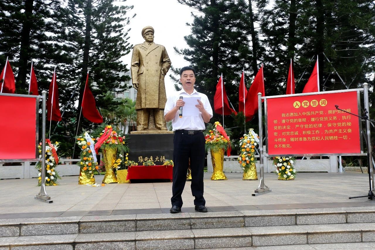 最后全体人员依次上台向张云逸大将铜像献花。