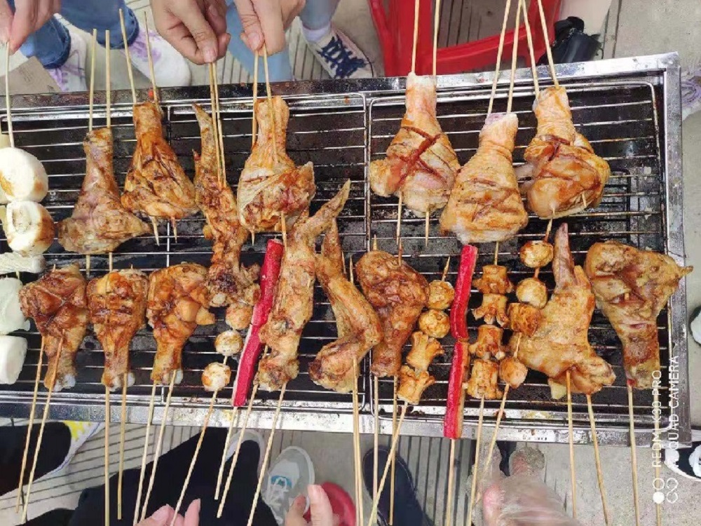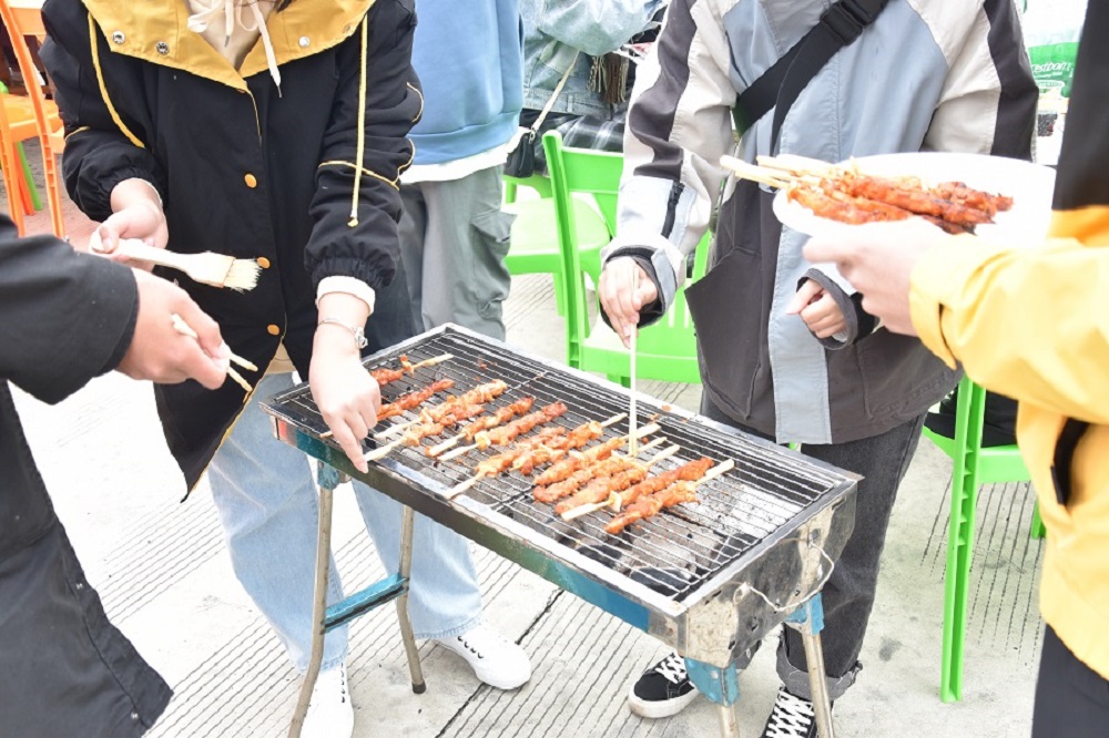 最令人期待的便是自助烧烤环节,工作组的伙伴们搬出早已洗干净的食材,将它们分配好后发放给每一个小组。大家虽然一开始手足无措,但在坚持团结协作,不抛弃不放弃的相互鼓舞下,积累了经验,明确分工,逐渐得心应手起来。最后,一串串美味诱人的美食摆放在餐桌上,大家在一片欢声笑语中结束了午餐。