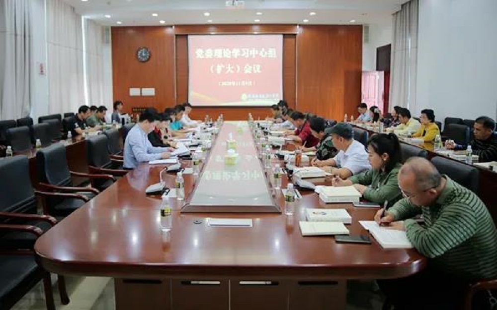 11月9日下午,我院在综合楼7楼第一会议室召开党委理论学习中心组(扩大)会议,专题学习贯彻党的十九届五中全会精神。学院党委副书记黄丽芹主持学习会并代表学院党委提学习宣传贯彻要求。院长李渝凤、副院长杨学前、副院长梁松和全体中层干部参加学习。