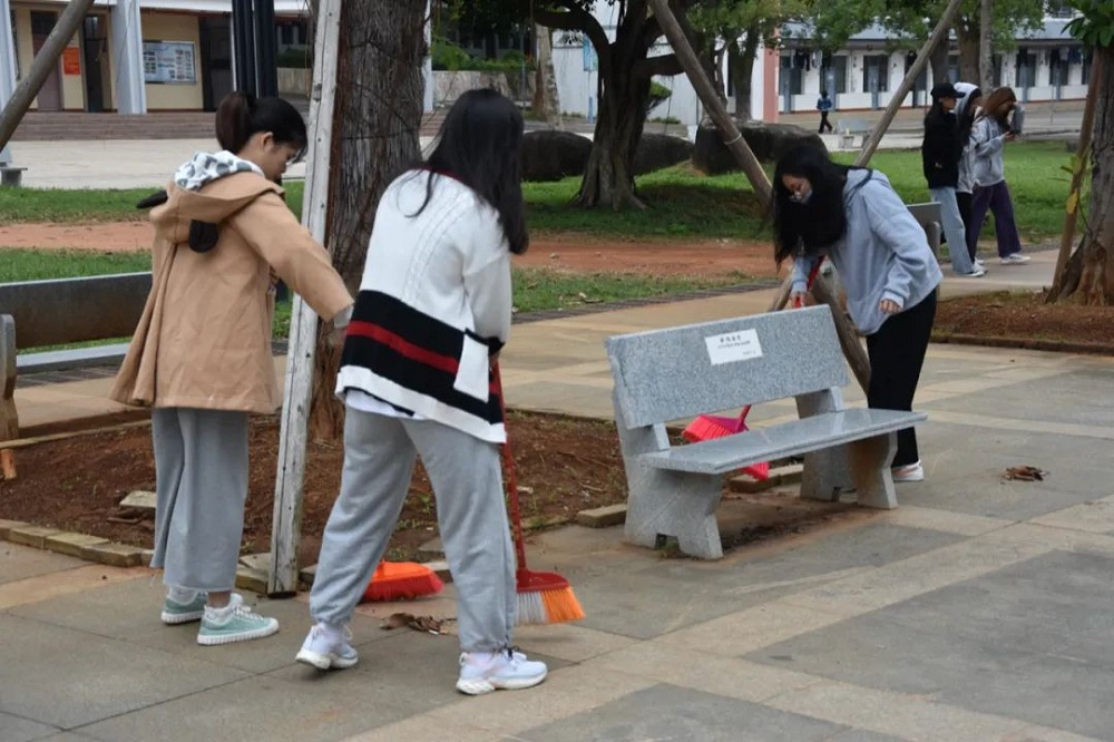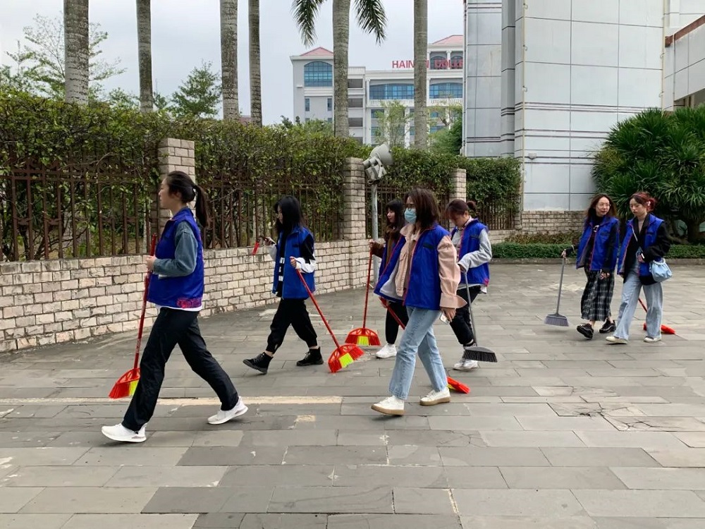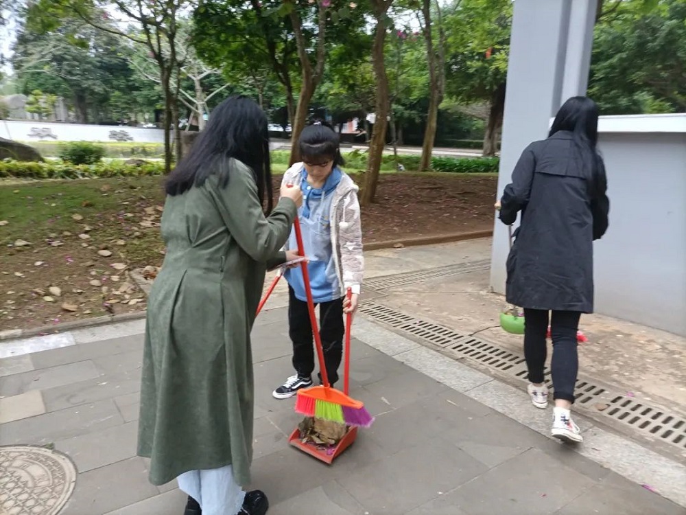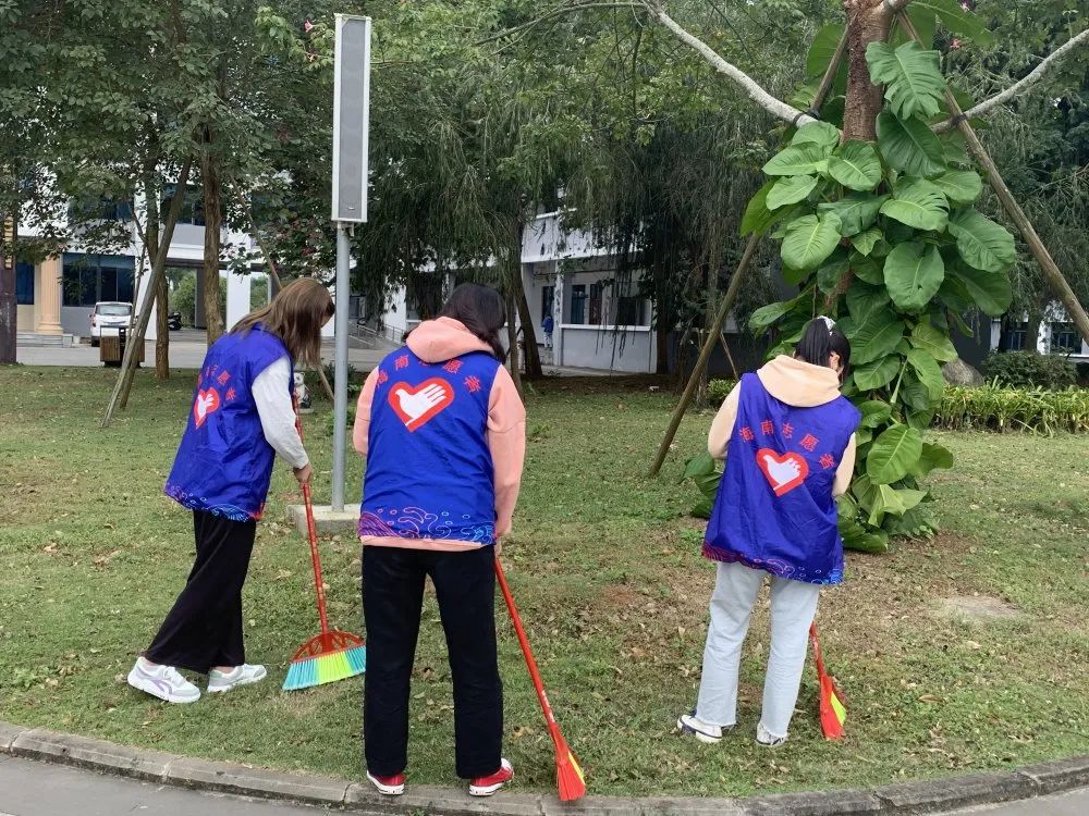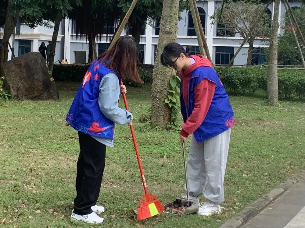 与此同时,各系部志愿者一同前往市教育公园。志愿者们不畏萧瑟的风,有条不紊地清扫公园内的树叶和垃圾,用自己的行动为文昌献出自己的一份力量。