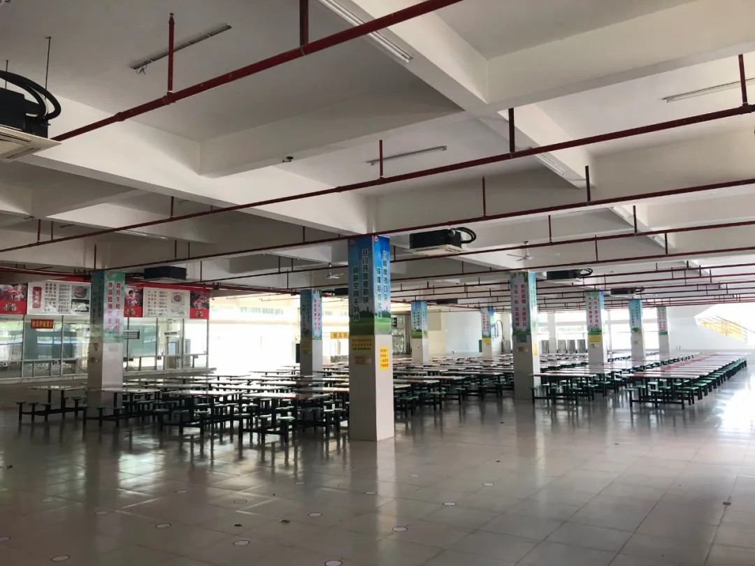 学校实行错峰打饭,并且分散了就餐标识,在食堂门口设置了感应式水龙头和洗手液等,设置了测温门和消毒通道,为保障食堂通风,在食堂里安装了空调的同时,安装了多个风扇。做好供水设施及水源、食堂餐具等消毒工作。 ps:食堂免费给返校学生供应绿豆汤;校医室储备充足的防暑应急药品;教室、宿舍空调均已杀菌清理。