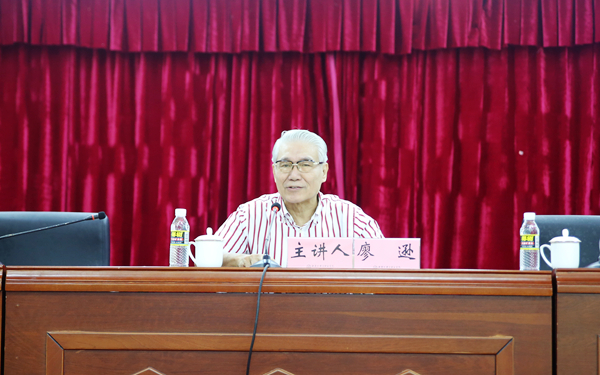 9月25日下午,我院党委领导班子“不忘初心、牢记使命”主题教育第七次集中学习在图书馆多功能报告厅进行,特邀国务院特殊津贴专家、省老教授协会首届理事会会长廖逊教授来校做党史国史专题讲学。学院党委书记曾锋主持讲座。党委副书记、纪委书记徐畅,副院长杨学前,党委委员梁松出席讲座。全体中层干部、党员以及入党积极分子参加讲座。
