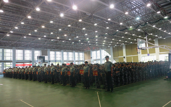 大会上,学生处副处长符兴宝宣布了军训中队编制,并介绍了承训单位的20名教官。