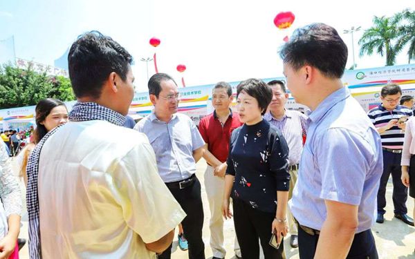5月10日至11日,以“迎祖国七十华诞 展职教时代风采”为主题的2019年海南省职业教育活动周展示活动在海口市体育馆隆重举行。作为参与活动的高职院校之一,我院组织师生在此次活动现场通过手工制品、美食制作、服饰展示、舞蹈等方式,展示了我院办学特色和成果,吸引了众多师生前来参观,深得他们的喜爱。