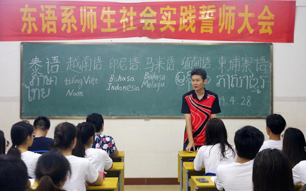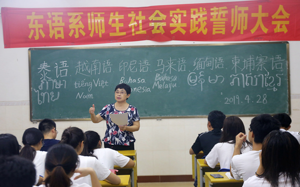 根据今年省教育厅4月18日下达的文件,本着“职业教育活动周”设立的内容,批准我院泰语、柬埔寨语、马来语、印尼语、越南语、缅甸语六个专业的学生外出学习、开展社会实践。为确保此次活动收到实效,我院东语系于4月28日晚在二号教学楼501教室举行“职业教育活动周”学生社会实践动员誓师大会。东语系党总支主要负责人王诒奎、主任郭艳萍教授出席,相关带队老师及学生共60余人参加。