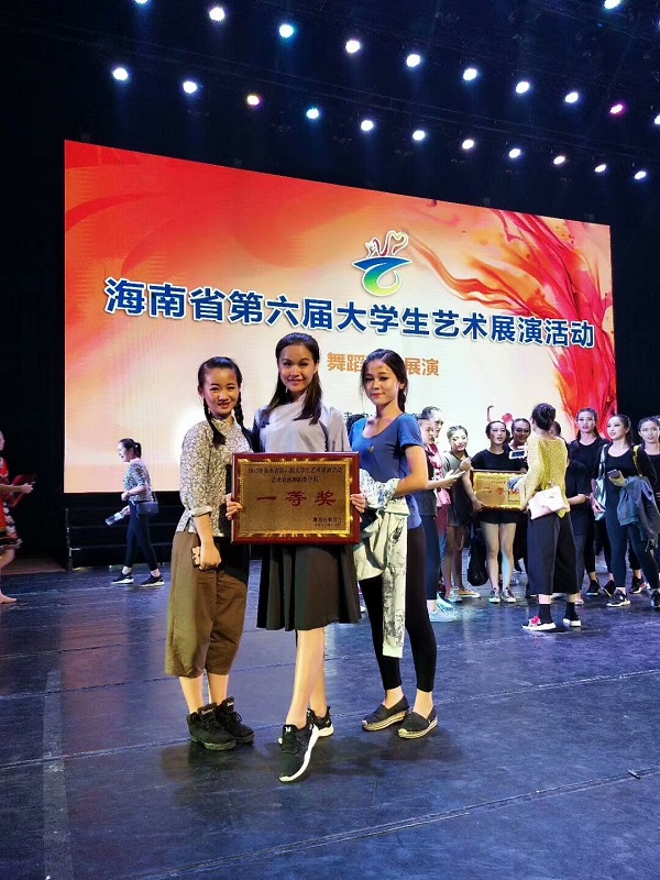 2017年10月28号,在海南大学举办的第六届大学生艺术展演中,beat365官方网站舞蹈团选送的舞蹈《活着1937》以总分全省第二名的成绩荣获此次大赛一等奖。这个作品讲述的是1937年日军屠杀中国人的时候,有23个中国女人,她们在挣扎中死去,在抗争中存活。她们用生命与敌人抗争,誓死托起襁褓里的婴孩,灯暗了,她们倒下死去;灯亮了,她们挣扎爬起,抬头微笑…