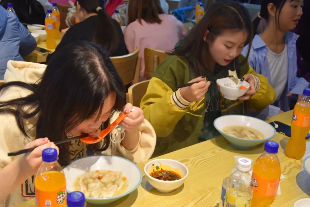 当白胖的饺子冒着热气在盘中你推我搡,一只只勺子早就迫不及待地伸向了它。同学们一边品尝着劳动成果,一边聊着天,热气氤氲间,一片欢声笑语。