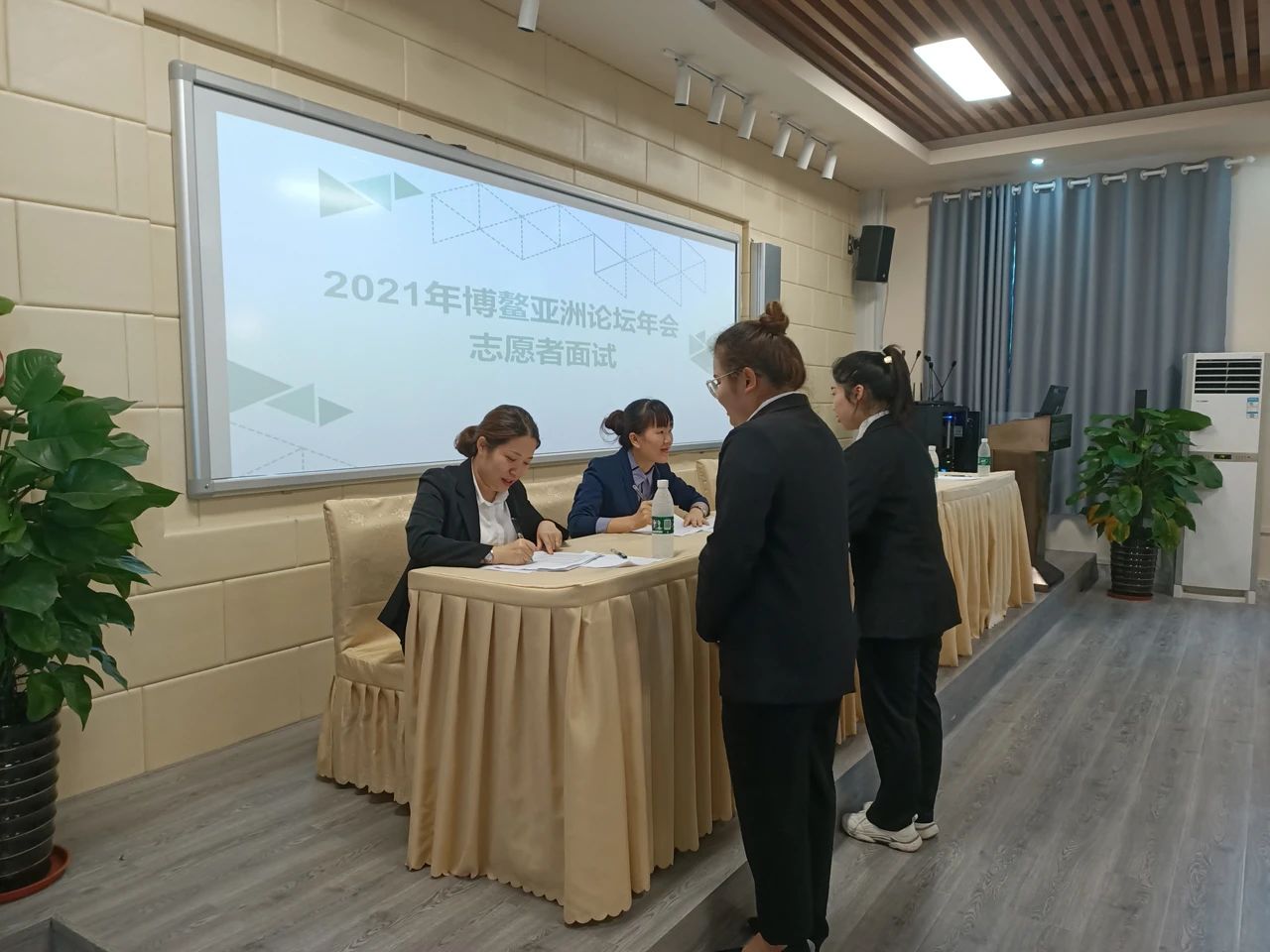 2021年3月25日下午我院举行博鳌亚洲论坛志愿者面试会,经各系部推选共计110位学生参加,每一位同学都做好了充足的准备,以极高的热情和饱满的精神状态来参加本次面试。