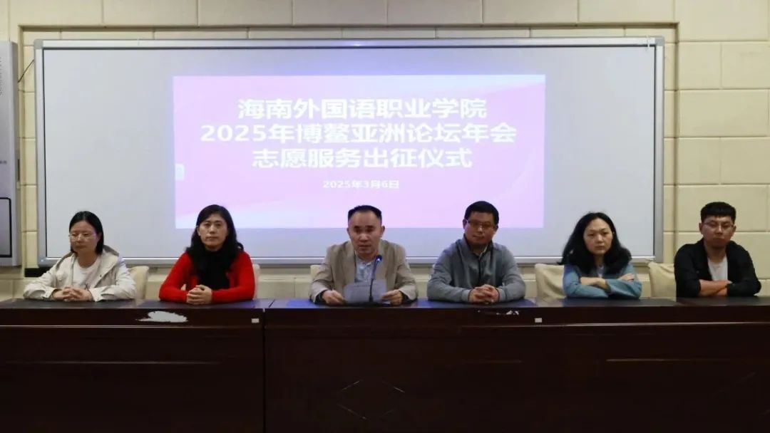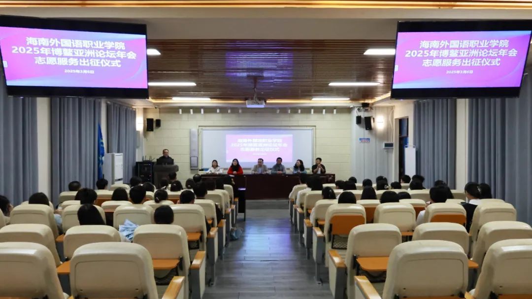 3月6日下午,校团委在综合楼AE101教室举行了博鳌亚洲论坛2025年年会(第一批)志愿者出征仪式。