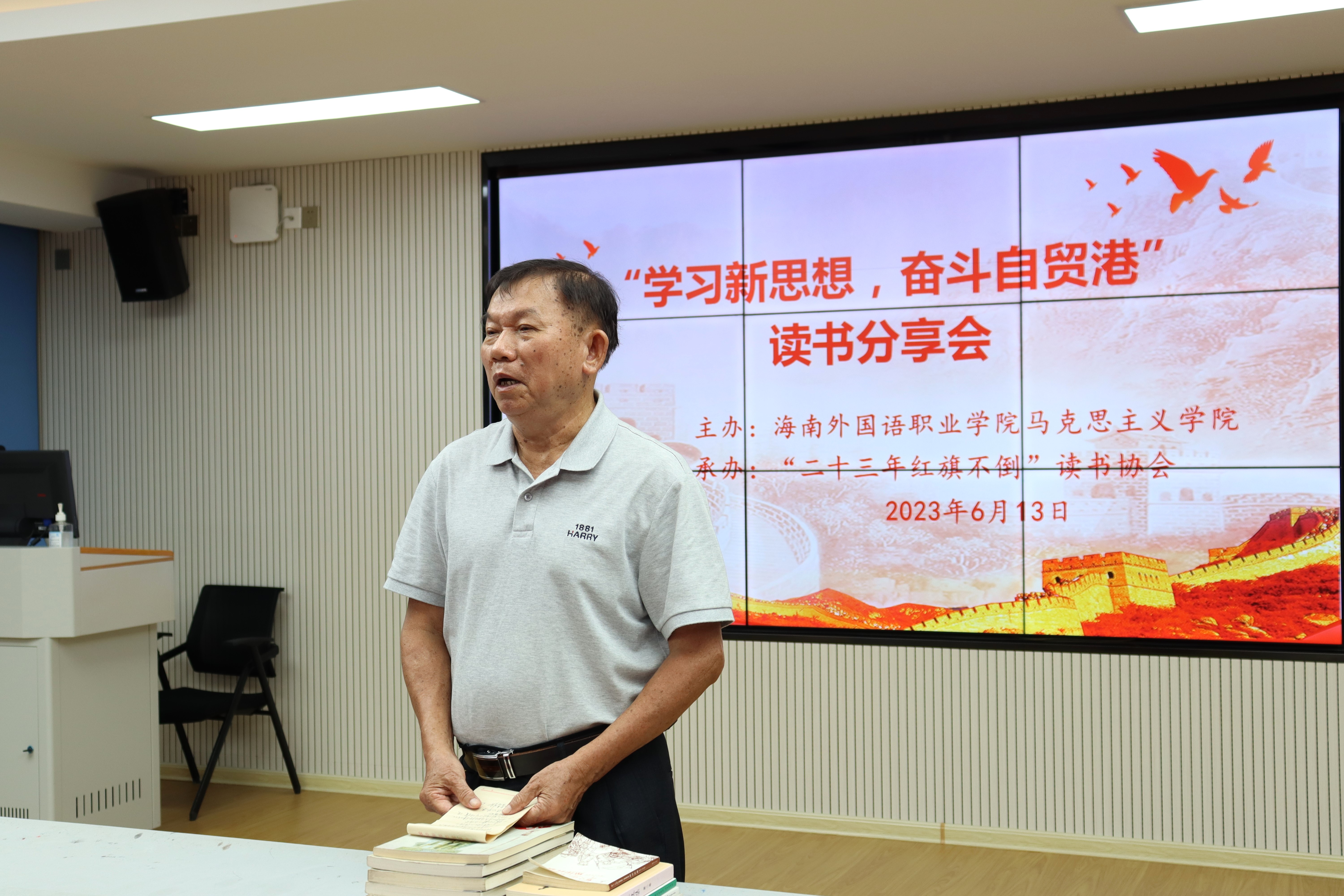 为学习贯彻习近平新时代中国特色社会主义思想主题教育和深入学习马克思主义思想,提高思想政治素养,培养青年大学生成为中国特色社会主义事业的践行者和奋斗者,6月13日,beat365官方网站“二十三年红旗不倒”协会在多媒体教室7开展“学习新思想,奋斗自贸港”读书分享会。协会指导老师赵佳钰主持本场活动,关心下一代工作委员会韩祝畴主任、团委韩琪老师及团委学生干部参加本场分享会。