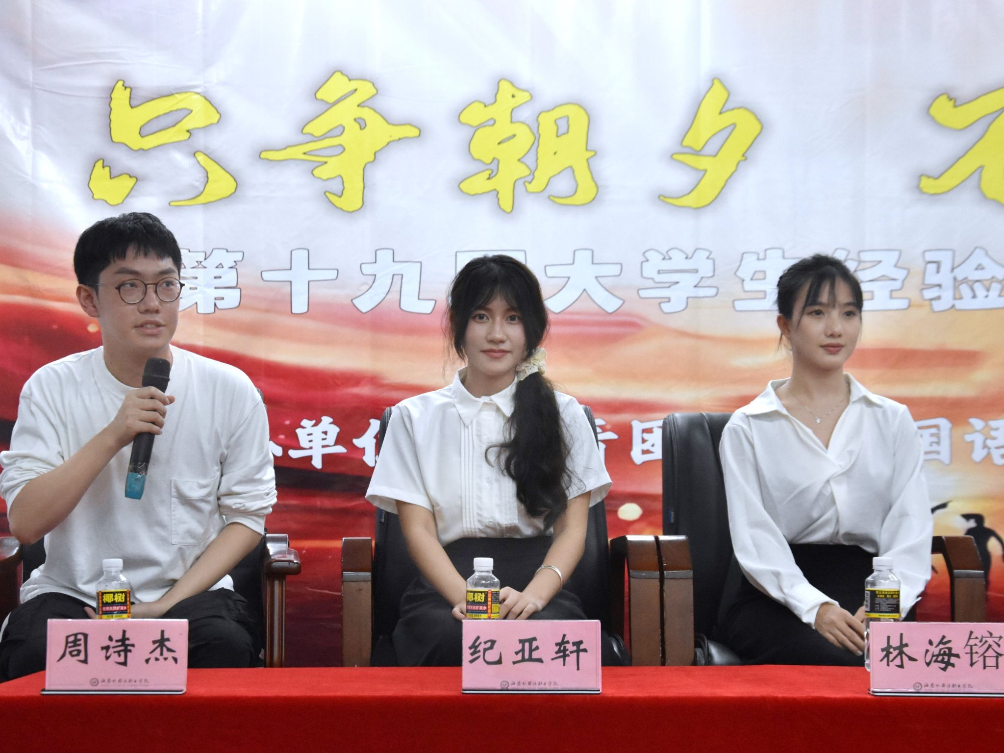 为加强学校学风建设,提升人才培养质量,营造积极向上的学习氛围,发挥优秀大学生“传帮带”的作用,帮助同学们提高自主学习能力,10月30日至11月2日,第十九届大学生经验分享交流会在多功能报告厅召开,由各学院优秀学生代表们为新生们分享个人的经验心得。