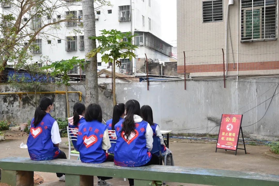 在校园北门一角,志愿者们尽职尽责,文明执勤,针对学生们翻墙送外卖的危险行为进行严格监督,共建良好校园秩序。