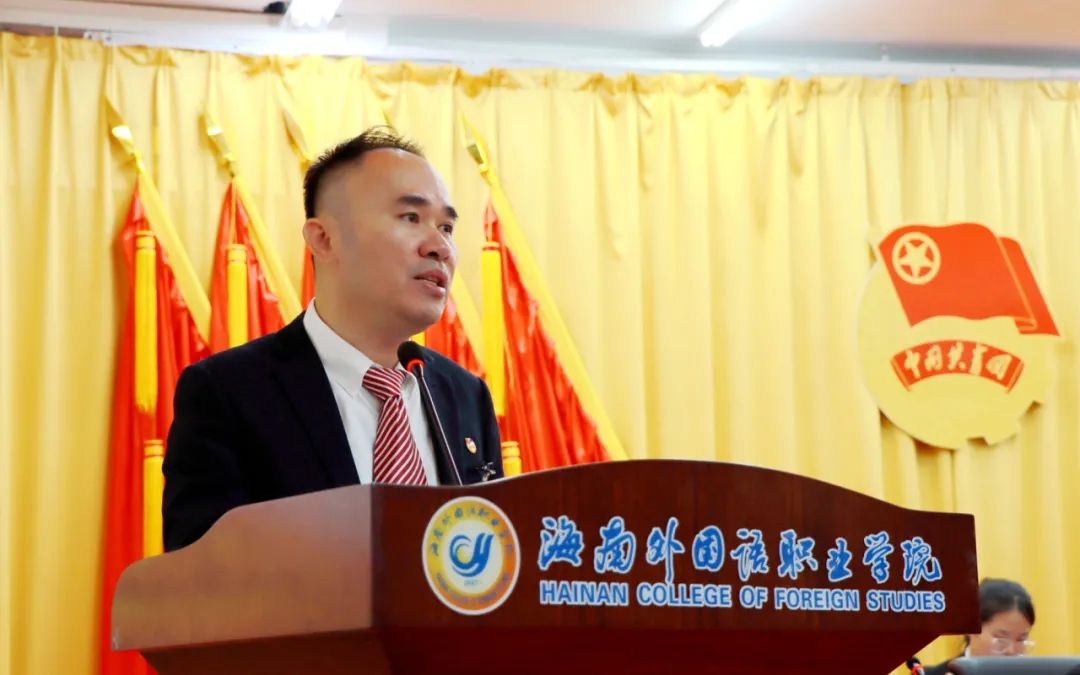 海南大学团委副书记杨智伟、学校工会常务副主席黄守剑分别代表兄弟高校和学校群团组织向大会致贺词。