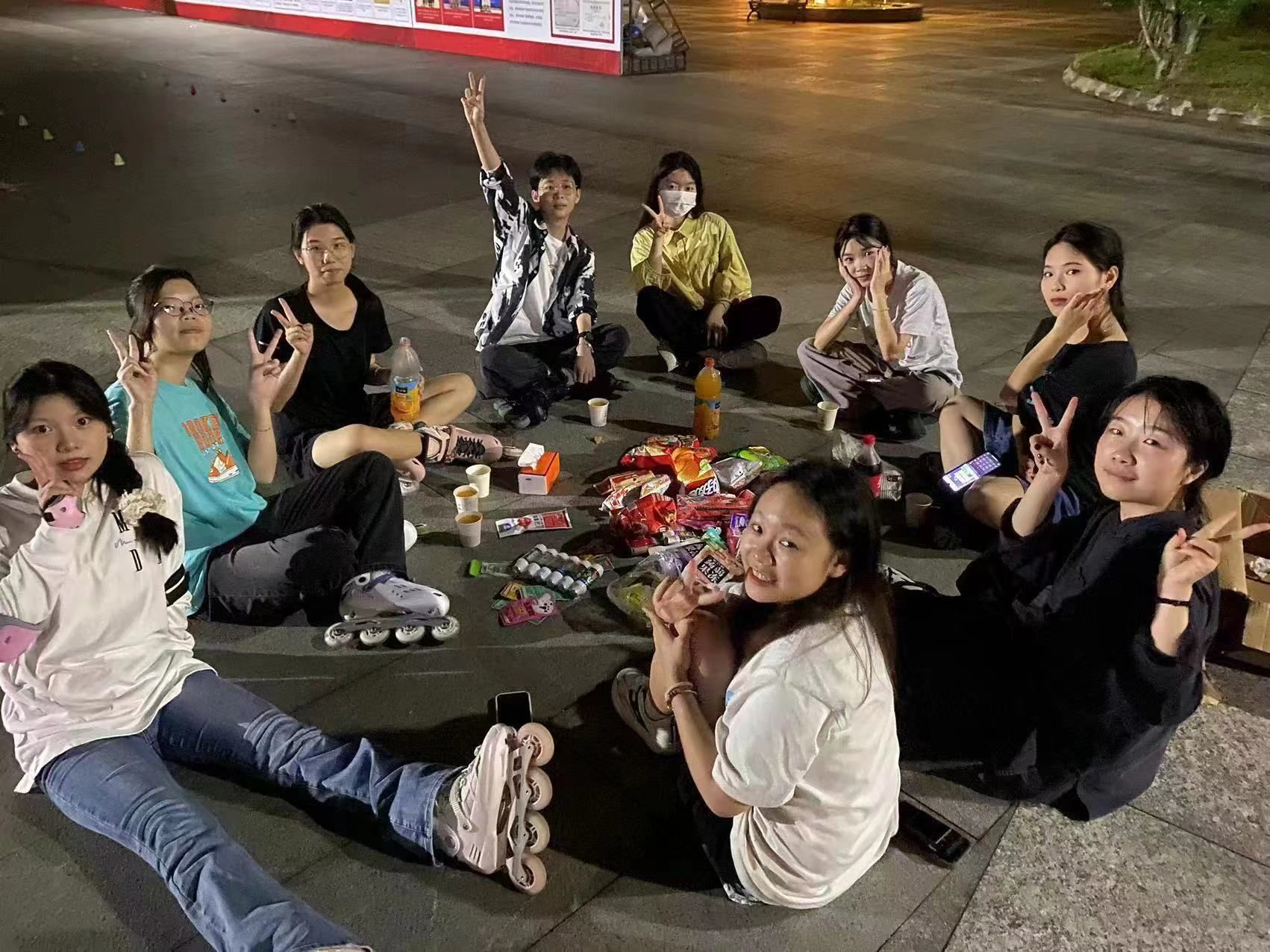 在日常生活中轮滑社不仅仅只有训练,社员空闲时间还会一起做游戏、聚餐培养大家的凝聚力。一起沟通交流对校园学习生活的感受与憧憬,展现了一个充满青春活力,激情四射的社团。