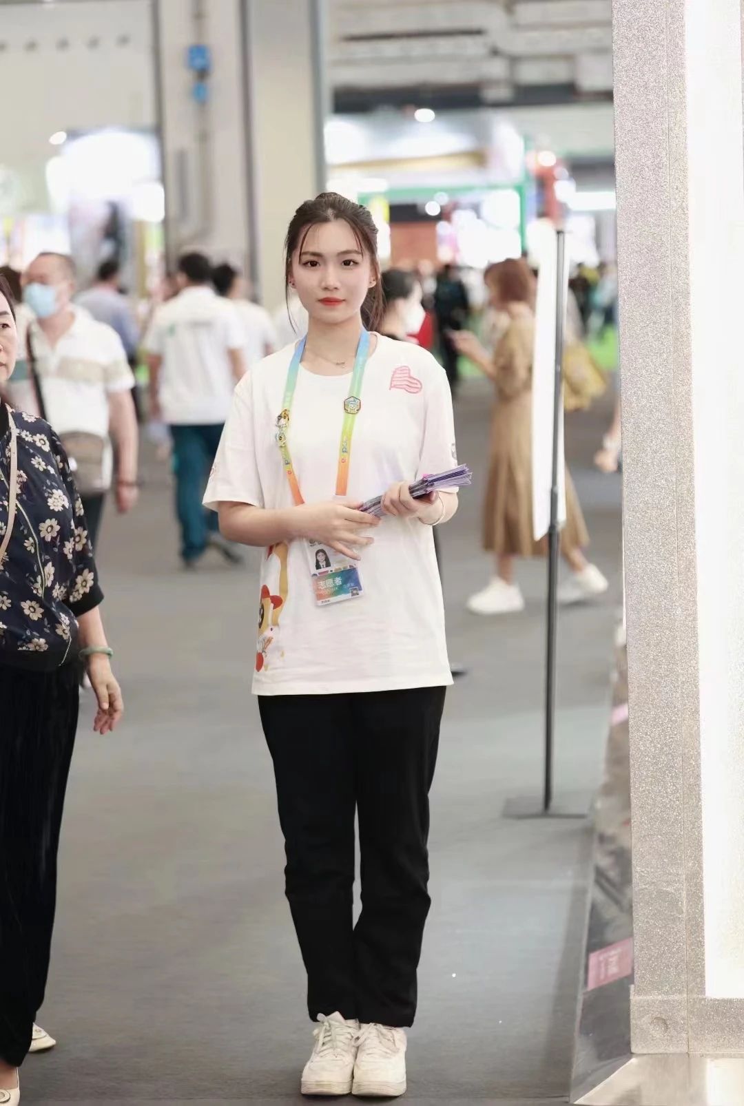 “您好,有什么需要帮忙的吗?”这是第二次参加消博会的志愿者陈嘉琪同学,今年她是服务台引导,为前来咨询嘉宾游客答疑解惑,为参展的国内外介绍参展的部分产品。她说:“作为旅游管理专业的学生,能够发挥自身专业优势,再次服务消博会,让我逐步成长为一个经验更加丰富、工作能力更加强、视野更加开阔的志愿者,感谢学校让我再次参加消博会志愿服务,实现专业学习价值。”