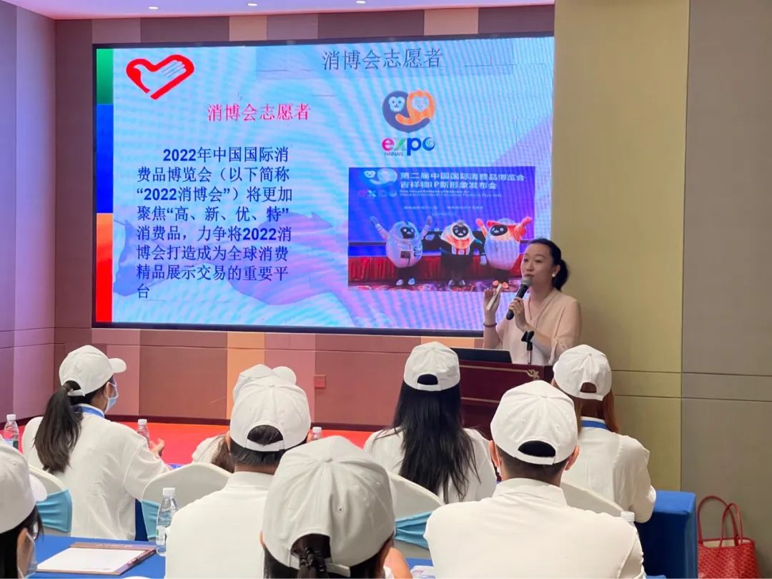 7月22-23日,2022年第二届中国国际消费品博览会志愿者能力提升培训班(beat365官方网站专场)在海口举行,我院112名消博会志愿者参加培训。