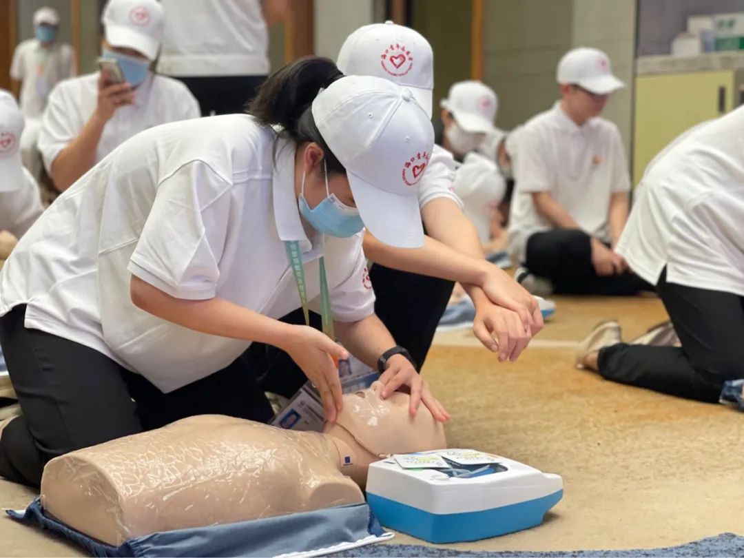 海口市120急救中心分别从心肺复苏急救、AED的使用方法、气道异物梗阻处理等方面进行详细讲解。通过模拟突发情况,志愿者们将所学技能经实操加以巩固,提高了急救知识的能力。