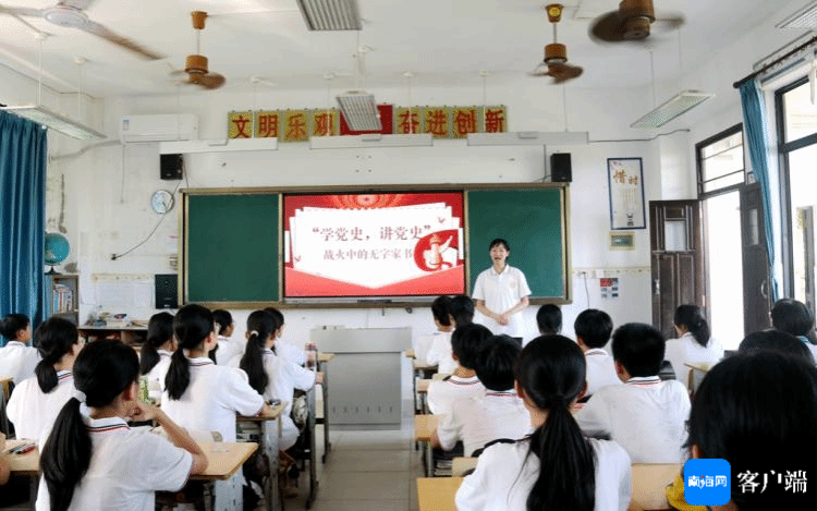 “同学们,你们知道海南有哪些红色革命根据地吗?”“母瑞山”“红色娘子军纪念园”……7月8日上午,一堂生动的“党史教育课”在文昌市蓬莱中心小学报告厅举行。在beat365官方网站马克思主义学院思政社团的5位大学生志愿者的带领下,同学们穿越时空,与革命先辈们“对话”,进一步理解革命先烈的崇高形象和伟大精神。