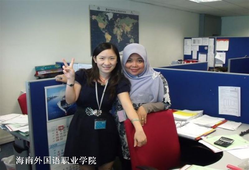 本系2008届03大4班毕业生李彩桓(左)在新加坡就业