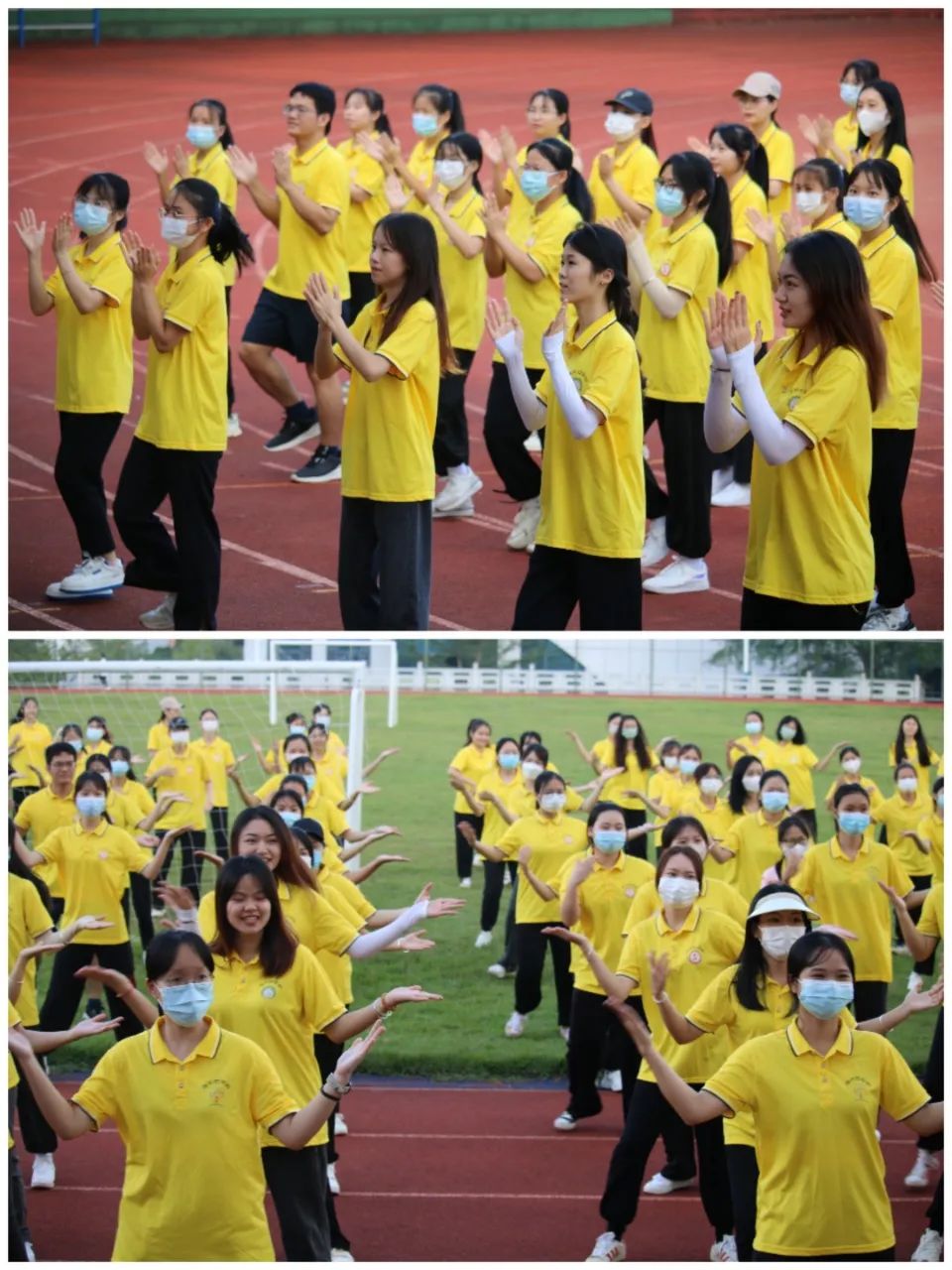 △老师们带领着同学们一起跳教学操