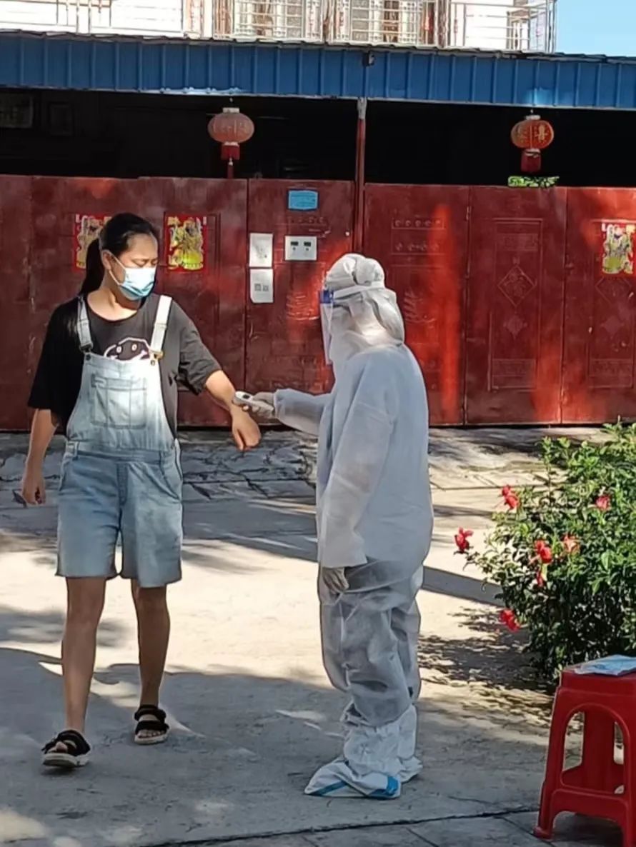 我的主要工作内容是:在出入口给予村民测量体温、喷洒消毒水;告知他们应合理有序地排好队伍、按照一米距离保持间隔、提醒大家提前打开好健康码、共同协助医护人员进行核酸工作以及防疫知识的宣传。当看到有老人行动不便时,我会去搀扶他们。每当帮助到他人时,听到那一句“辛苦了,谢谢你。”那一刻便觉得自己所做的这一切是值得的。