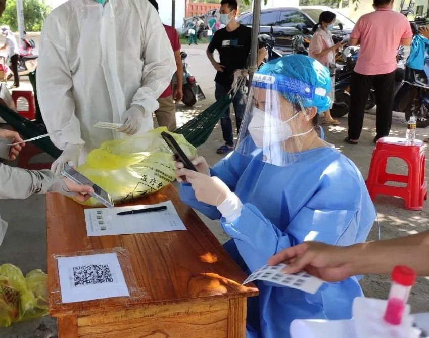 我的主要工作内容是录入村民们的个人信息,给拥有健康码的村民扫码录入,而没有健康码的村民,就需要我手动录入他们的身份证、户口本、手机号码。对于此次工作最让我为难的是,由于村民们都讲的海南话,我一个外省学生基本听不懂在说些什么,所以工作进展得十分困难,在后来有热心的村民给我翻译,我的工作才得以顺利进行。接连两天,我都在那个采集点录入信息。朝晨曦露去,披星戴月归,在和医护人员、政府工作人员以及志愿者加班加点的工作下,终于完成了4000余人的核酸采集任务。
