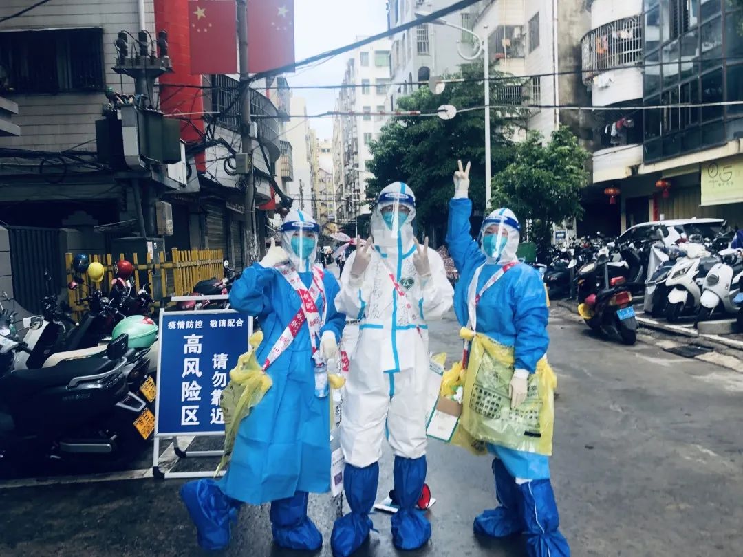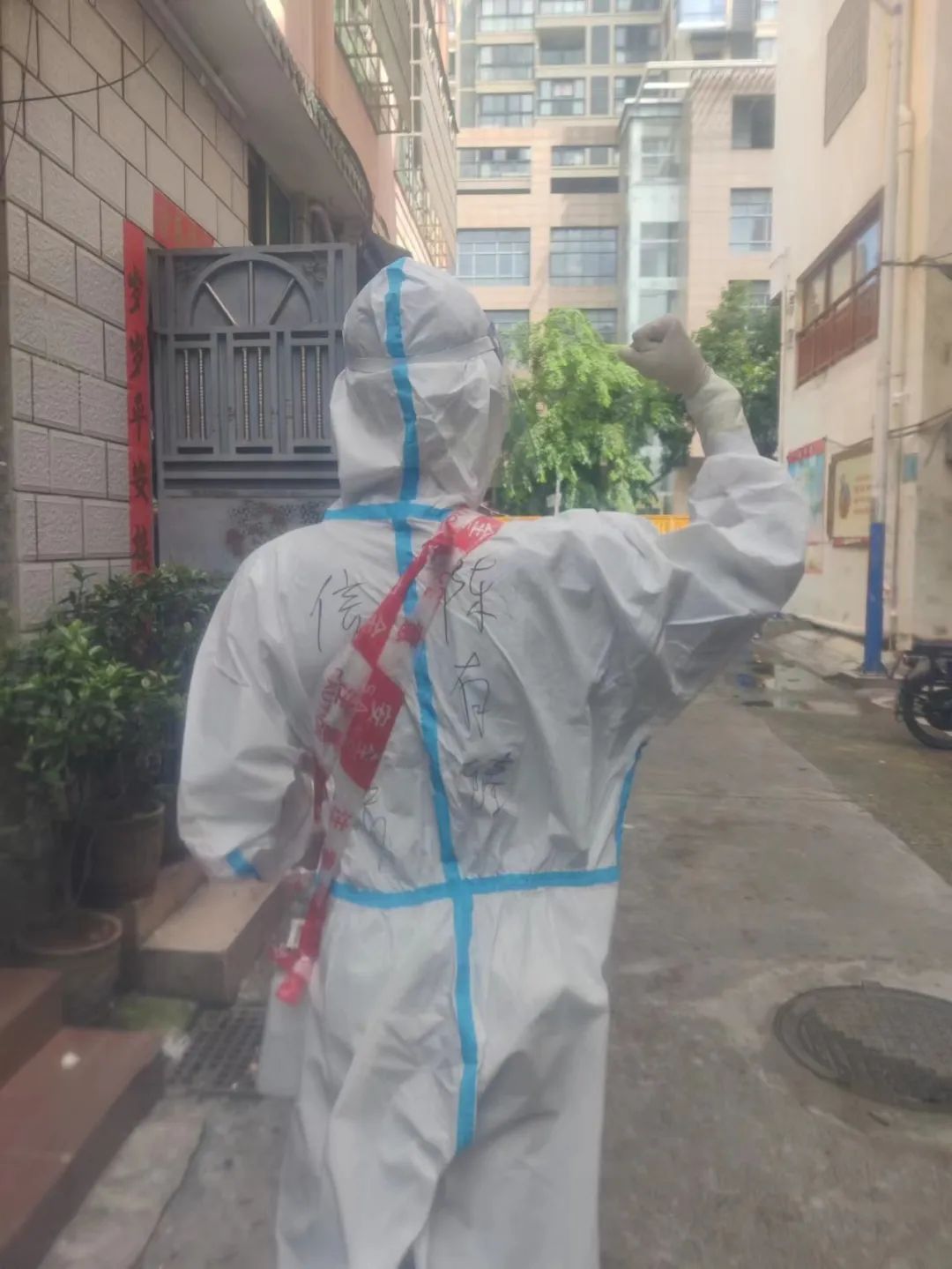 我记得有一次,我换好装备,一个医护人员拉着我说:“姐一定要天天看到你。”这场疫情,让我们结识和相遇,成为了战友和家人。病毒无情人有情,有一天,我们一定会打败新冠,让更多的人获得幸福生活。有一次入户的时候,我回到了我的初中学校,我认出了以前教过我的老师们,虽然时间很长,他们也不记得我了,但我记得他们。他们以前的学生也长大了,换上一身防护服站出来保护人民。一场疫情也让我结识了很多志同道合的朋友一同抗击新冠疫情,更有了勇气,明白了团结一致就是我们打败疫情的重要力量!