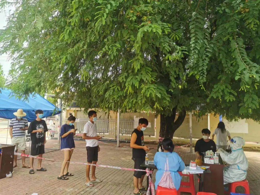 在暑假期间,由于海南突发疫情,我便参加了海南省东方市大田镇俄龙村的疫情防控志愿者活动。刚开始只需要我们志愿者入户协助居民进行核酸自测,自84日起,我村成为中风险地区,所以每日都会有医护人员来村委会给村民做核酸检测,而我们志愿者的主要工作内容是录入村民信息、贴管、写封条、维持秩序等。并按时每天在村里的公开事务群中进⾏疫情防控知识的宣传⼯作——提醒居民到村委会做核酸时,⼀定要戴⼝罩,做好疫情防控工作。