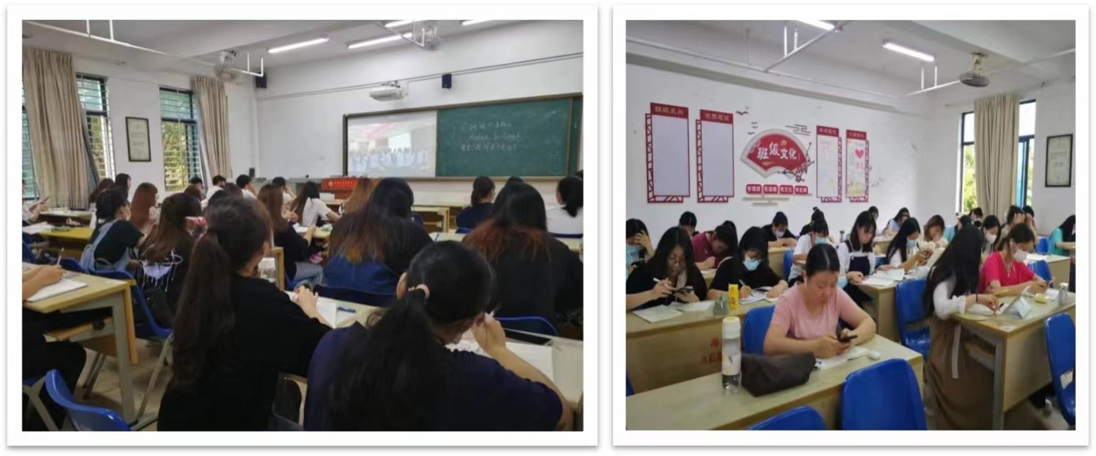 5月9日,星期一,上午8:30—9:30,20英语教育1-6班和18英教501-504班全体同学以班级为单位,在各自教室集中观看教学视频,记录课堂教学笔记,学习优秀学姐何超禹的教学视频,内容为人教版五年级Let's make a home library.