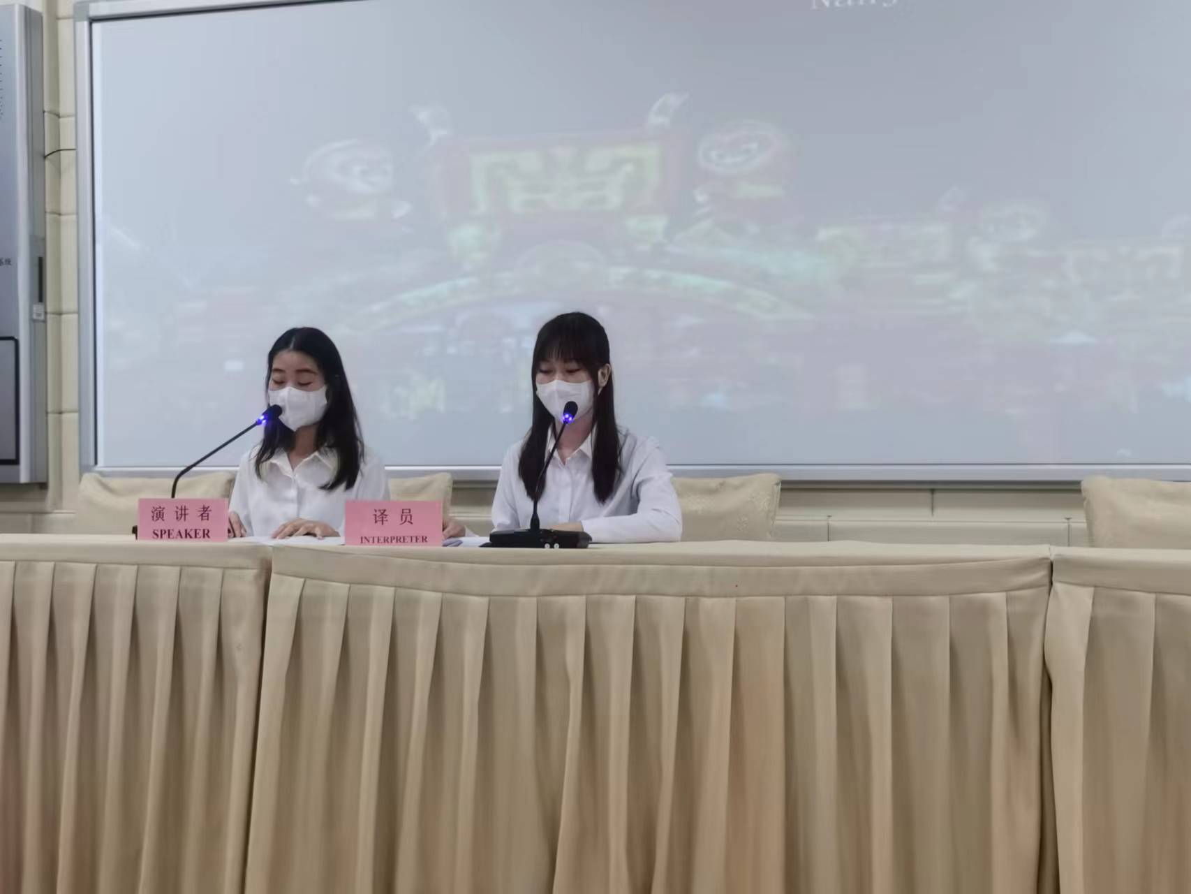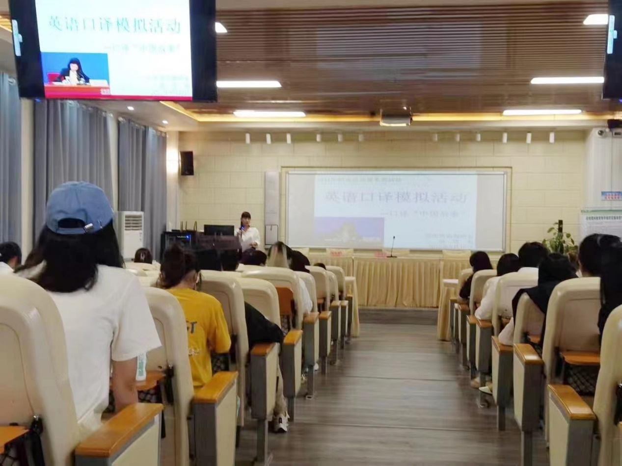 为了让同学们更好地将英语口译知识和翻译技能应用到真实的现场口译场景中,培养同学们的现场口译能力和译员具备的基本素质,同时提升同学们的中华文化自信,“译”好中国故事,传播好中国声音。5月10日,英语系应用英语教研室在AE101举行了主题为口译“中国故事”的英语口译模拟实操活动。