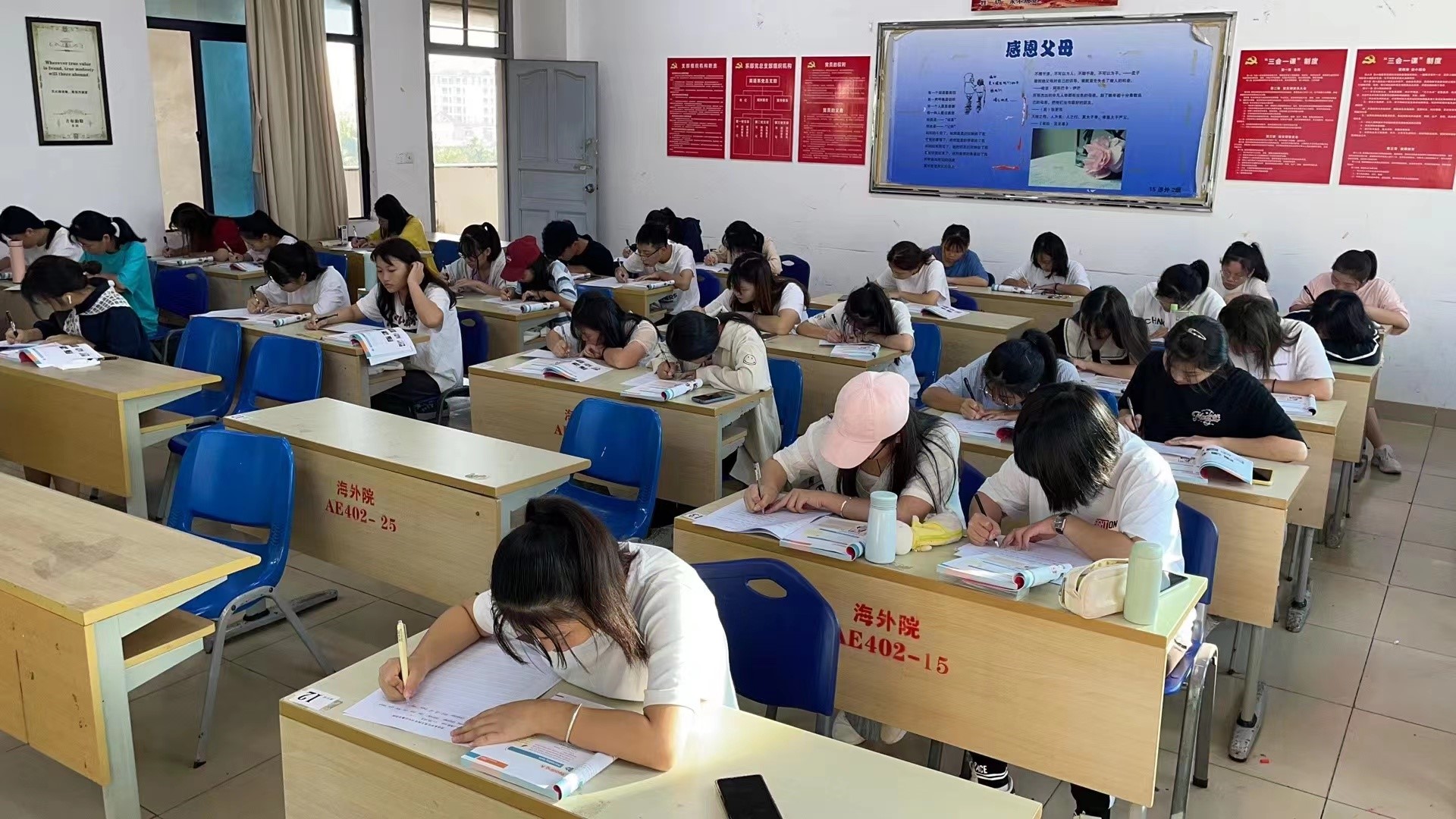 比赛当中,有的同学坐着,有的同学还站了起来。各自拿出了自己最大的努力去书写,尽自己最大的能力把自己最好的那一面展现出来。