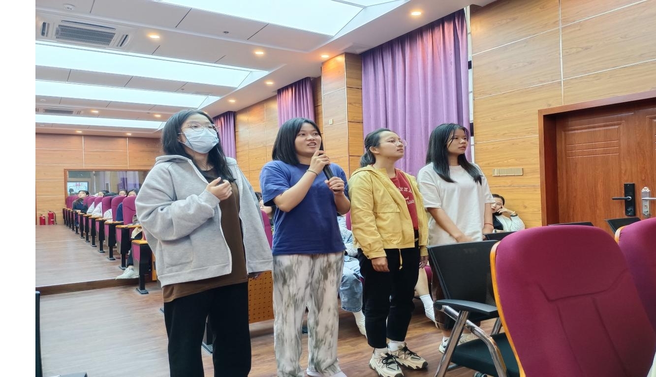 在讲座的最后部分,四位即将参加故事演讲比赛的同学被邀请上台进行展示,郑老师现场指出他们在语言表达时出现的问题,并从语速、语气、语调的运用及态势语等方面为同学们提供了专业的指导。