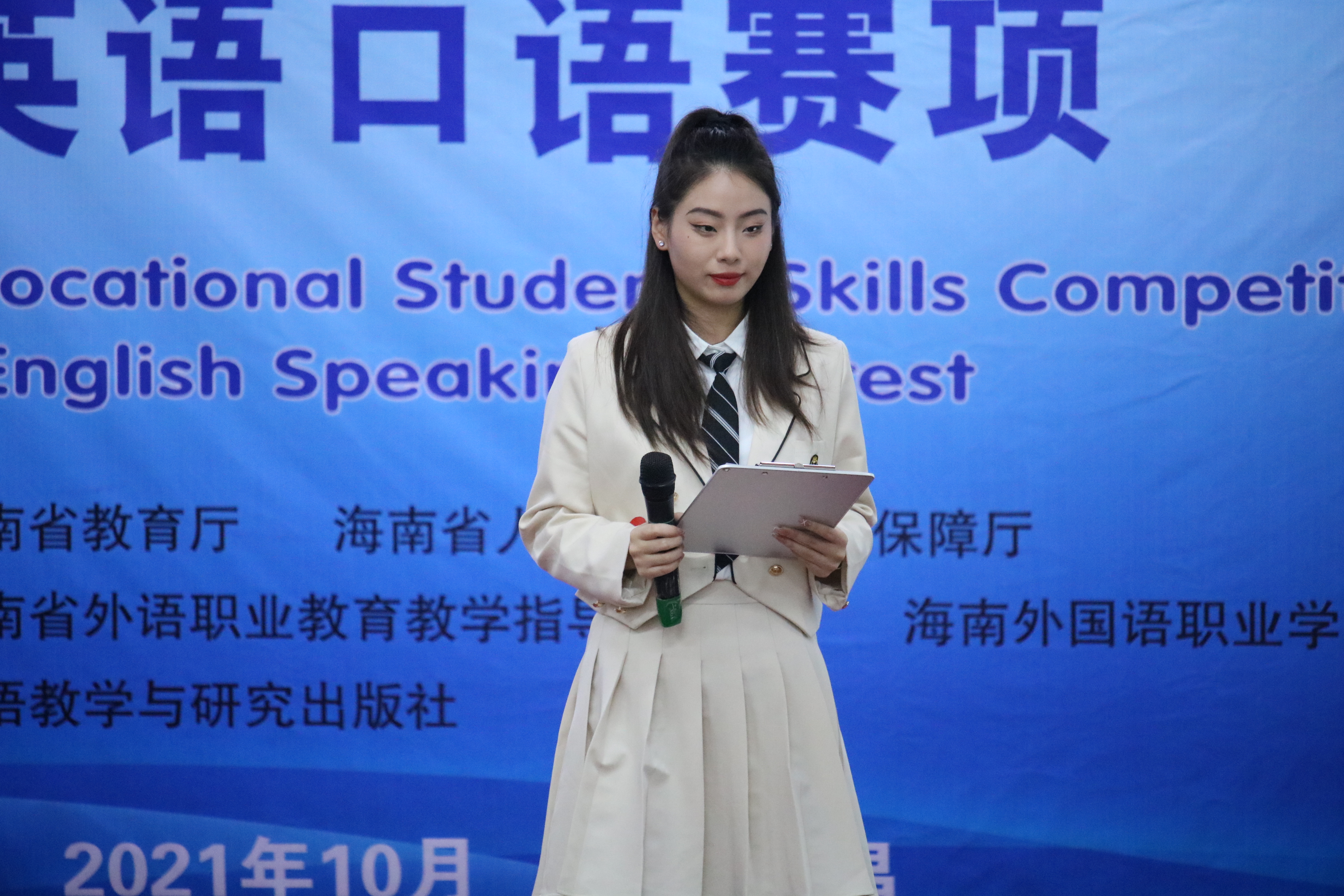此次比赛为我省高职院校学生提供了一个自我能力展示且公平公正竞争的平台,旨在提高学生对英语技能运用的整体能力,丰富学生的文化内涵,为全面提高人才培养质量夯实基础,整体提升高等职业教育英语教学水平,为海南自由贸易港建设添砖加瓦、培养人才。