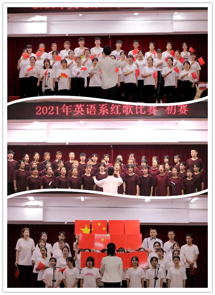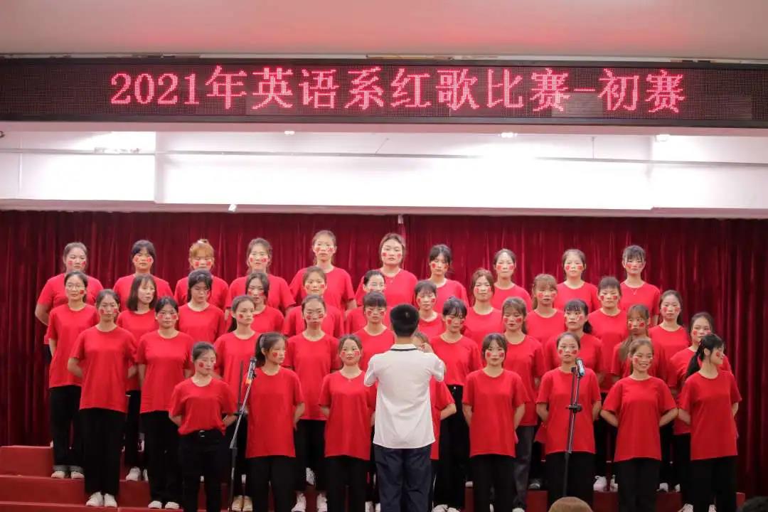为丰富同学们的校园生活,激发同学们的爱党、爱国情怀,庆祝中国共产党建立一百周年,展现出新时代大学生对祖国和中国共产党的歌颂与热爱,2021年5月9日-10日,英语系在多功能报告厅举办开展“唱红歌,学党史,勇担当,开新局”班际红歌合唱比赛初赛。