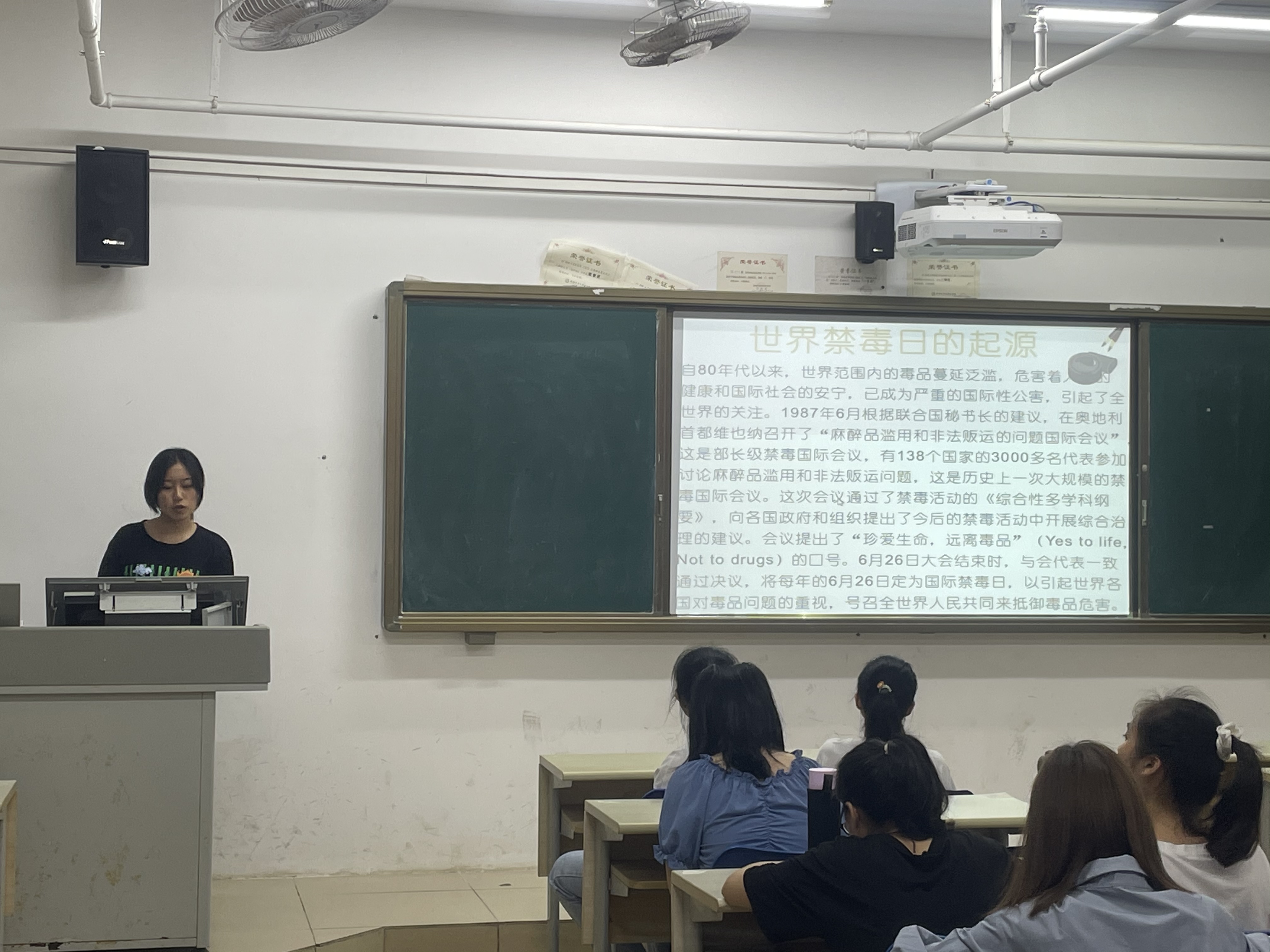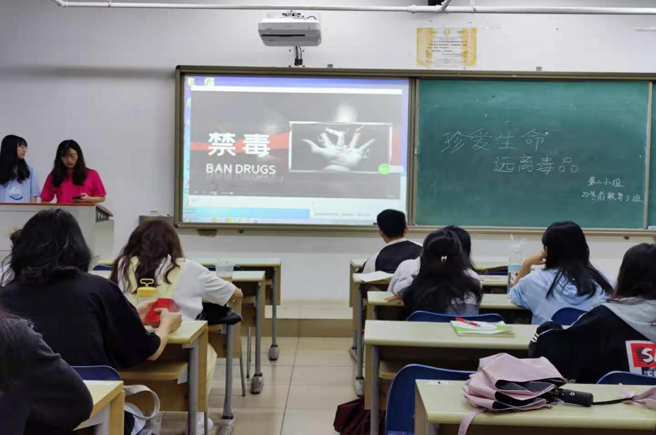 各班采取听看、问、答等多种形式开展班会,为同学们上了一堂生动的禁毒宣传预防课。班会上,同学们播放禁毒宣传视频,展示毒品图片,宣传法律法规,普及禁毒知识。在讲解过程中适时提出问题,让学生回答,这种问答的形式让更多的同学提高了参与感,在参与中提高了自己的禁毒知识,对禁毒的危害以及大学生如何拒绝毒品有了更深一步的认识。