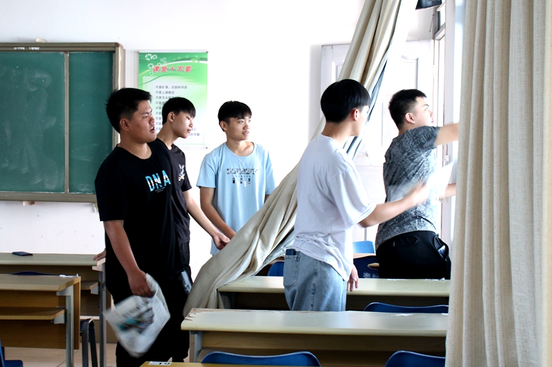 同学们以最佳状态投入到繁重的劳动中,充分发扬主人翁精神,将爱校、护校、净校、美校的义务劳动进行到底,在此次大扫除活动过程中,各班同学认真负责,做到了多角度、多方位、力争不留死角、不留盲区,不仅将清理工作落到了实处,同时也充分展现了大学生的青春活力与志愿精神。