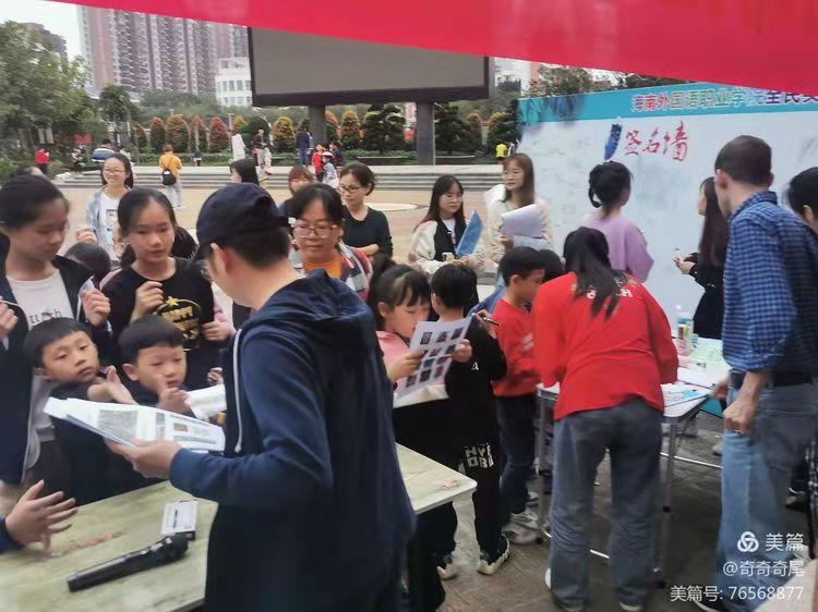 为响应海南省人民政府关于全面提升公民外语水平行动的号召,适应海南自贸区(港)建设需要,培养海南公民开放意识,提升公民外语文化素养和跨文化交际能力。我院于2020.11.29日周六下午,英语系黄健老师、美国外教John和Sarah带领着十五位文化交流协会的志愿者,在文昌市教育公园组织了一次全民英语角活动,希望借此活动进一步激发文昌市民群众学习英语的兴趣与积极性,提高市民群众语言交流水平,适应海南自由贸易港建设新形势,掀起全民学英语的热潮,形成全民投身海南自由贸易港建设的浓厚社会氛围。