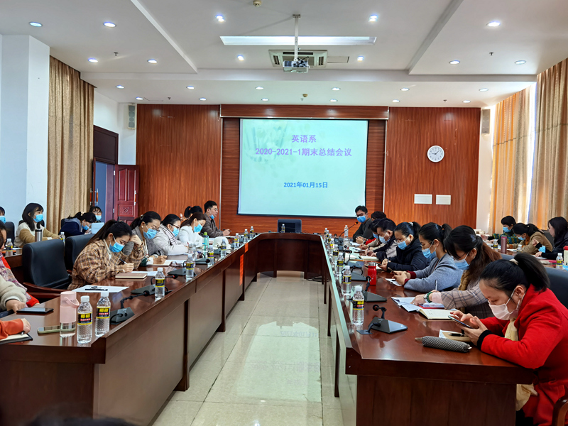 1月15日上午,英语系在综合楼七楼会议室召开了期末总结大会,全体教职工参加了本次会议,会议由英语系团总支书记冯琛主持。