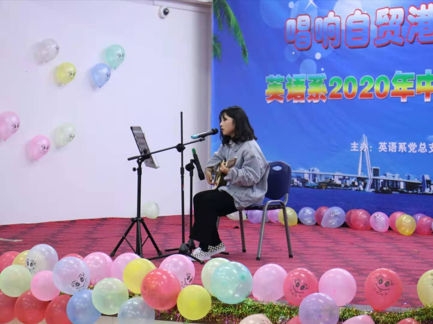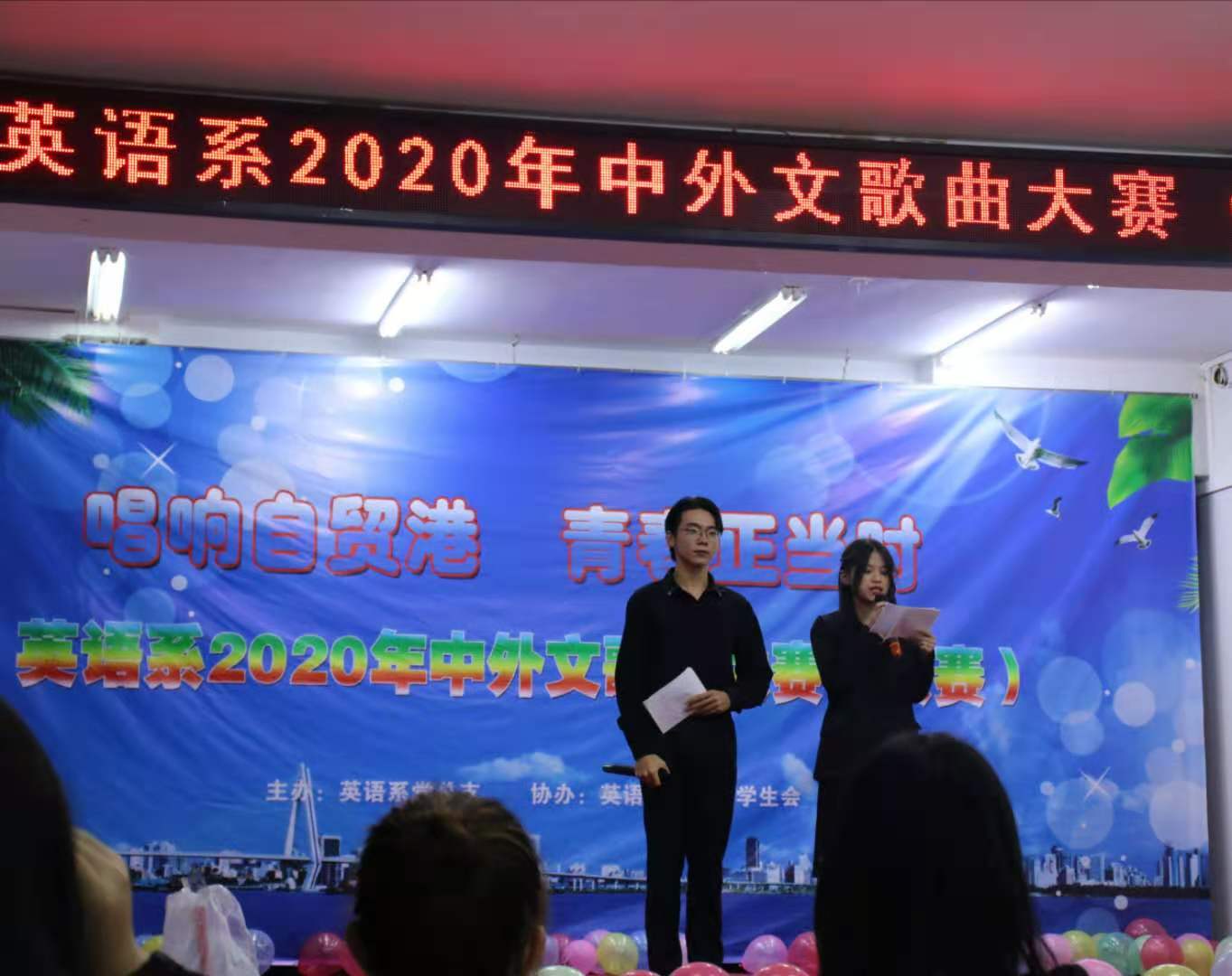 用歌声唱响青春,用青春放飞梦想。为海南自贸港的建设营造良好的文化氛围,全面贯彻落实自由贸易港建设总体方案,由beat365官方网站英语系团总支学生会主办“唱响自贸港,青春正当时”中外文歌曲大赛于11月9日晚八点在多功能报告厅里举行。担任本次比赛的评委有英语系金龙英老师及学生会主席团。