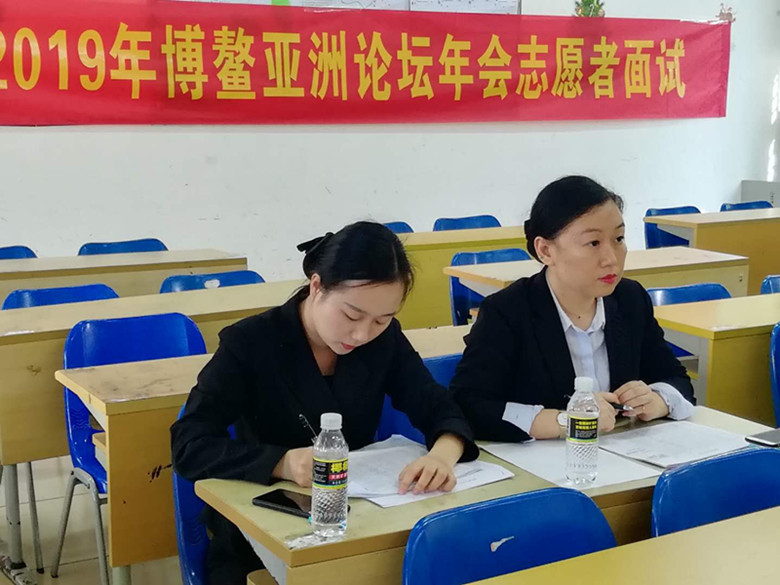 今年的志愿服务活动,同学们更感兴趣的还是即将召开的博鳌亚洲论坛年会,在今年的志愿者面试中,同学们精神抖擞,展现了自信、干练的一面,相信他们今年一定能很好的服务年会,展现英语系学生的风采。