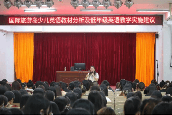 4月10日下午,英语学院邀请文昌市小学英语教研员、教培中心主任石碧波在图书馆多功能报告厅做题为《国际旅游岛少儿英语教材分析及低年级英语教学实施建议》的专题讲座。英语教育教研室老师与19级五年一贯制及21级英语教育专业学生共同聆听了此次讲座。英语教育教研室主任郑一新老师主持讲座。