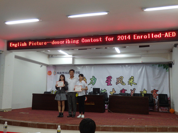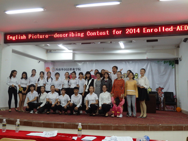 为了丰富学生的校园生活,提高学生的英语口头表达能力,116日晚上7:30应用英语系在多功能报告厅举行了16高职各班(五年一贯制,16少儿1-2班,16翻译1班,16涉外事务1班)的英语情景描述比赛,每班推荐选派约3-5名选手,共有18名选手参加了此次比赛。比赛有两个环节,第一个环节是看图并用英文描述图片并做评论,不得带讲稿,第二个环节是回答外教提出的与图片内容有关的问题和其他问题,选手用英文回答被问的问题,评委们根据选手表现评分。