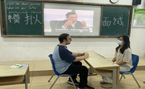 Ø 外教Brad在给同学们进行模拟面试活动