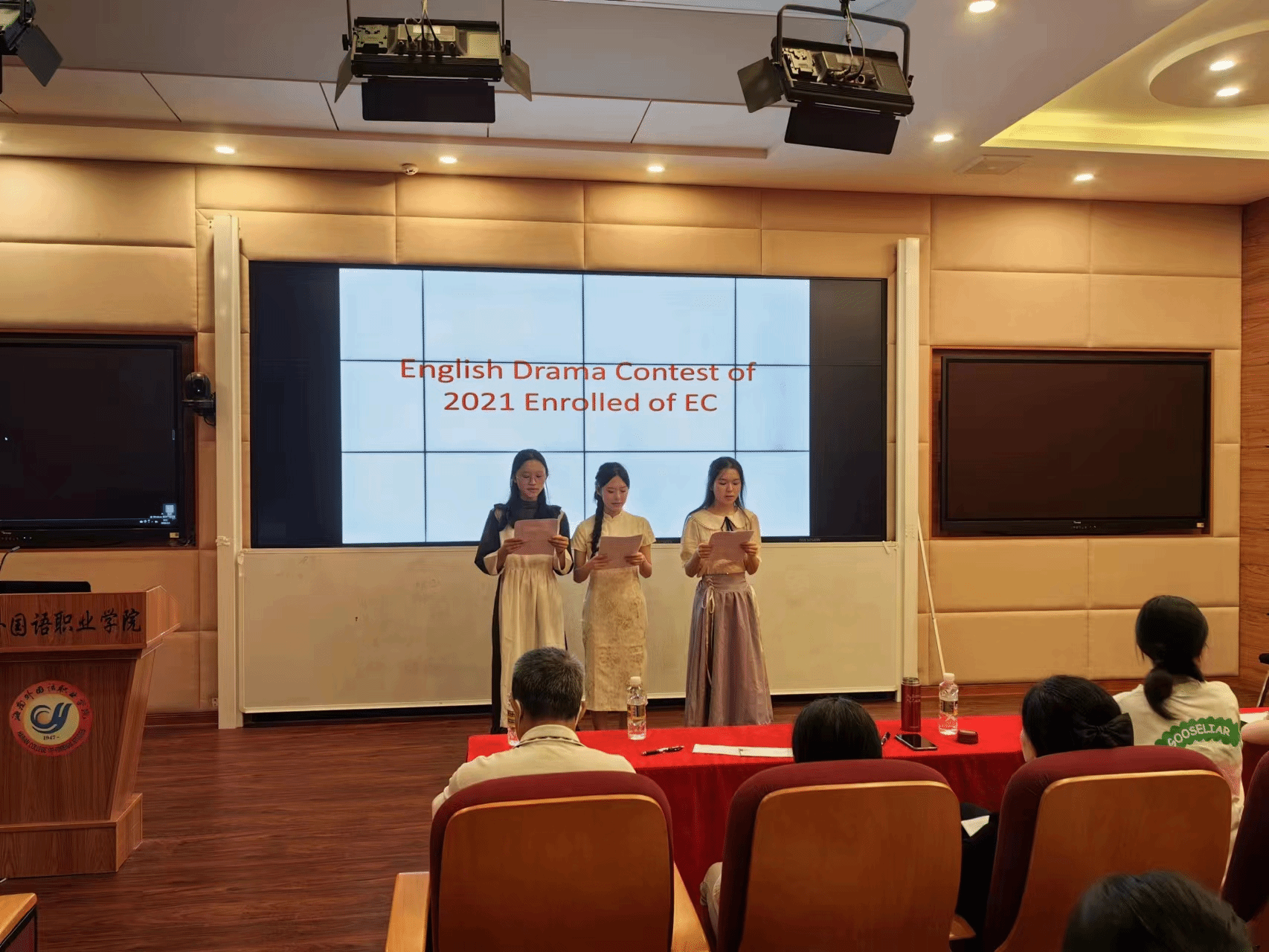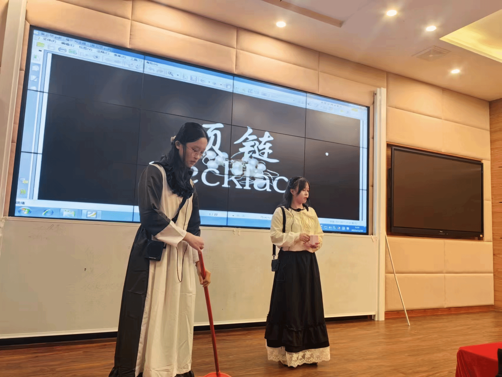 在比赛各组都展现了自己的风采,尤其是第六组表演的剧目《甄嬛传》最令人印象深刻,不管是讲英语台词的流利度还是表演都非常精彩!有了道具的加持和人物之间相互配合,该节目显得更加出色。陈家建老师为此次活动进行了点评,他说,今天大家表现非常棒,通过精彩的台词表现和表演以及精致的道具和场景设置,展现了话剧艺术的魅力,每组各具特色,人物设定形象突出,相信我们中某些同学将来一定能成为好演员!最终同学们也令自己满意的成绩。