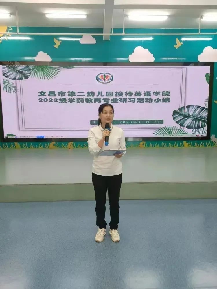 为深化产教融合、校企合作,深入推进协同育人方式,帮助我院学前教育专业学生更好地将所学的基础理论知识、专业知识和基本技能运用到幼儿园实际教育工作中,英语学院学前教育教研室组织22学前教育1-5班全体学生深入海口微城未来幼儿园、文昌市幼儿园、文昌市第二幼儿园、文昌市第四幼儿园、文昌市诒喜幼儿园共六家合作单位开展为期两周的线上、线下研习活动。研习内容主要包括:五大领域教育、幼儿园教育活动设计、班级管理、幼儿保教、家园合作等。