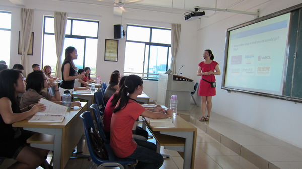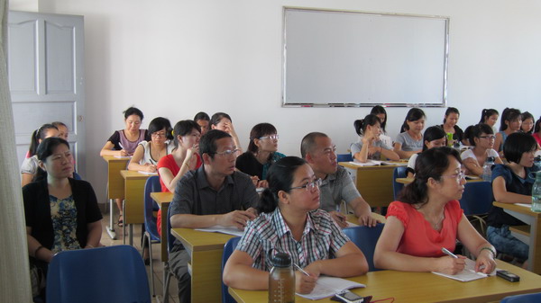 首先,教务处张萍副处长向大家介绍了我院《综合英语》省级精品课程的建设和完善情况,强调了精品课程建设的重要性。随后,应用英语系曹阳副主任对我院实践教学环节做了进一步说明,突出介绍了我系刚刚开展的语言文化周的实践成果。最后,双方就分层教学、学生晨读、校外实习实训等问题进行了深入的探讨。
