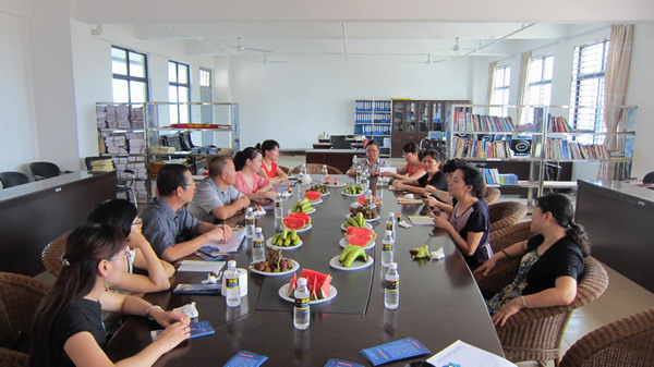 2012525上午,琼台师范高等专科学校《综合英语》课程小组一行6人在外语系副主任丁才辉的带领下,来到我院应用英语系进行为期半天的交流。应用英语系刘然主任、曹阳副主任、教务处张萍副处长等6人进行了热情地接待。