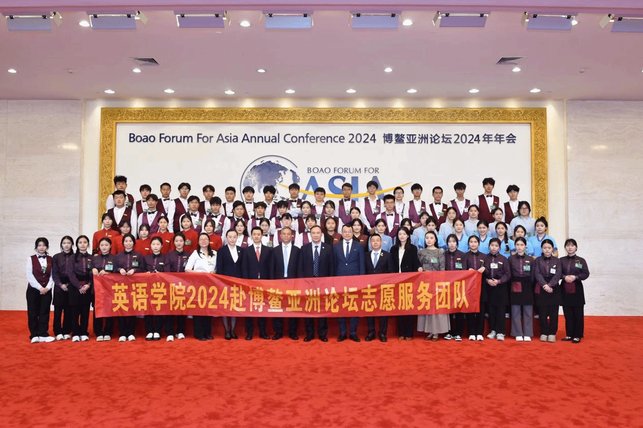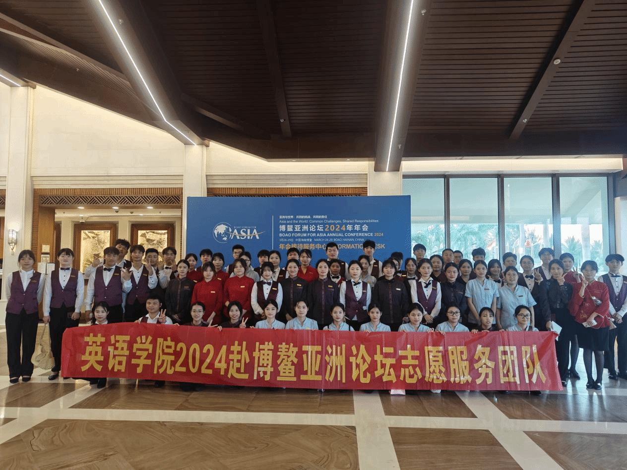 2024年3月26-29日,博鳌亚洲论坛2024年年会在海南博鳌召开,本次年会主题为“亚洲与世界:共同的挑战 共同的责任”。为做好本次年会的服务保障工作,英语学院高度重视并精心选派68名志愿者和李杏妹、蔺晓玥两位教师参加志愿服务。68名志愿者以高度负责任的态度和过硬的专业本领通过了前期面试、岗前培训,并以敢于挑战自我、热于奉献青春、勇担时代重任的决心圆满地完成了年会任务。我院学子的志愿服务工作得到了各国嘉宾和社会人士的广泛好评,不仅展现了我院学子的卓越风采,也体现了新时代中国青年的奋斗精神与社会担当。