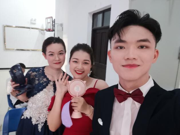 △比赛后台照片——2020年参加海南省大学生艺术展演话剧组,荣获二等奖