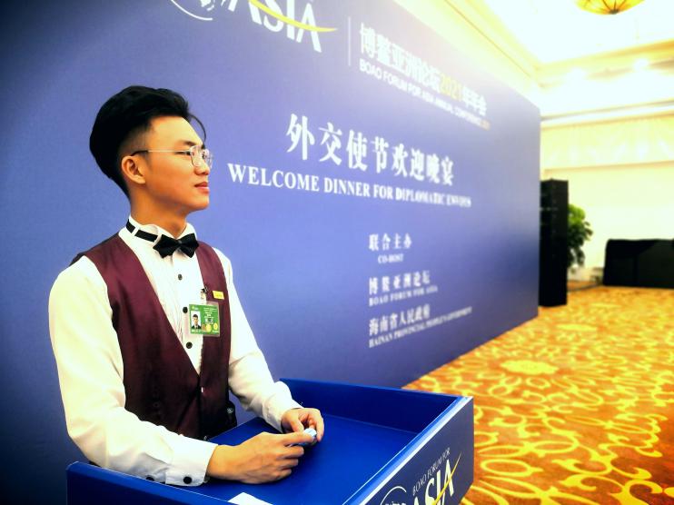 △志愿工作照——2021年参加博鳌亚洲论坛志愿项目,在主会场部门工作